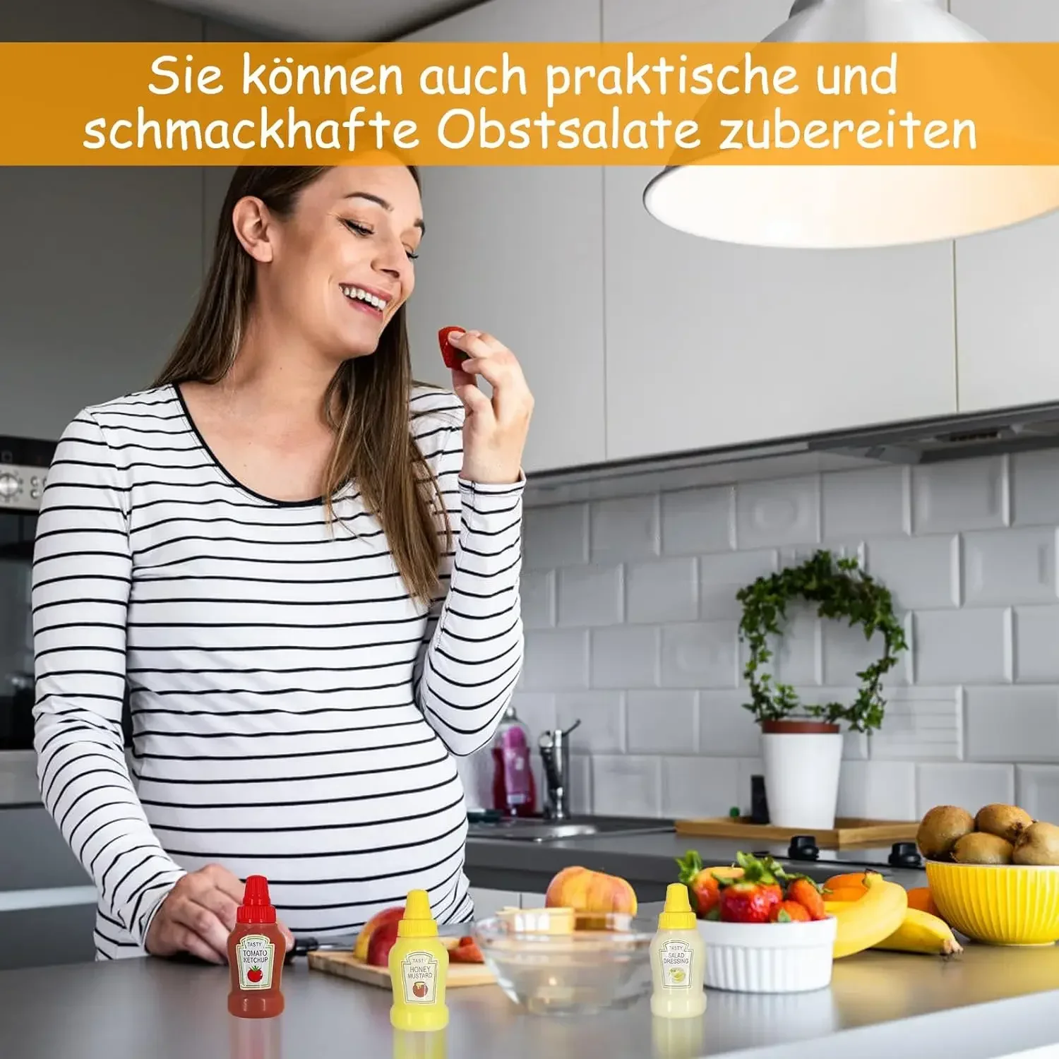3. Mini size, portable: size, lightweight design can carry sauce, no need to carry a whole bottle
